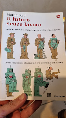 Le tesi di Ford non potevano che sovrapporsi con la situazione descritta da Pyketty nel suo libro sul capitale. L'automatizzazione di massa causa la disoccupazione o, nel migliore dei casi, la compressione dei salari, che devono continuare a scendere (in termini reali) per sostenere la concorrenza dei software e dei robot. Ciò causa gravi problemi economici nel medio periodo (se la gente non ha più soldi per comprare cose, chi sosterrà la crescita dei consumi di massa e quindi dell'economia globale?) e probabili sconvolgimenti strutturali nel lungo periodo, quando le disuguaglianze di ricchezza descritte da Pyketty avranno infine creato una élite di super ricchi e scardinato i moderni sistemi democratici e meritocratici dei paesi occidentali. Che fare, quindi? Il titolo del capitolo 10 del libro di Ford la dice lunga: "Verso un nuovo paradigma economico". Ne consiglio a tutti la lettura, in particolare della sezione "L'argomento a favore di un reddito minimo garantito", tema sul quale si è parlato tanto, e male, negli ultimi anni.